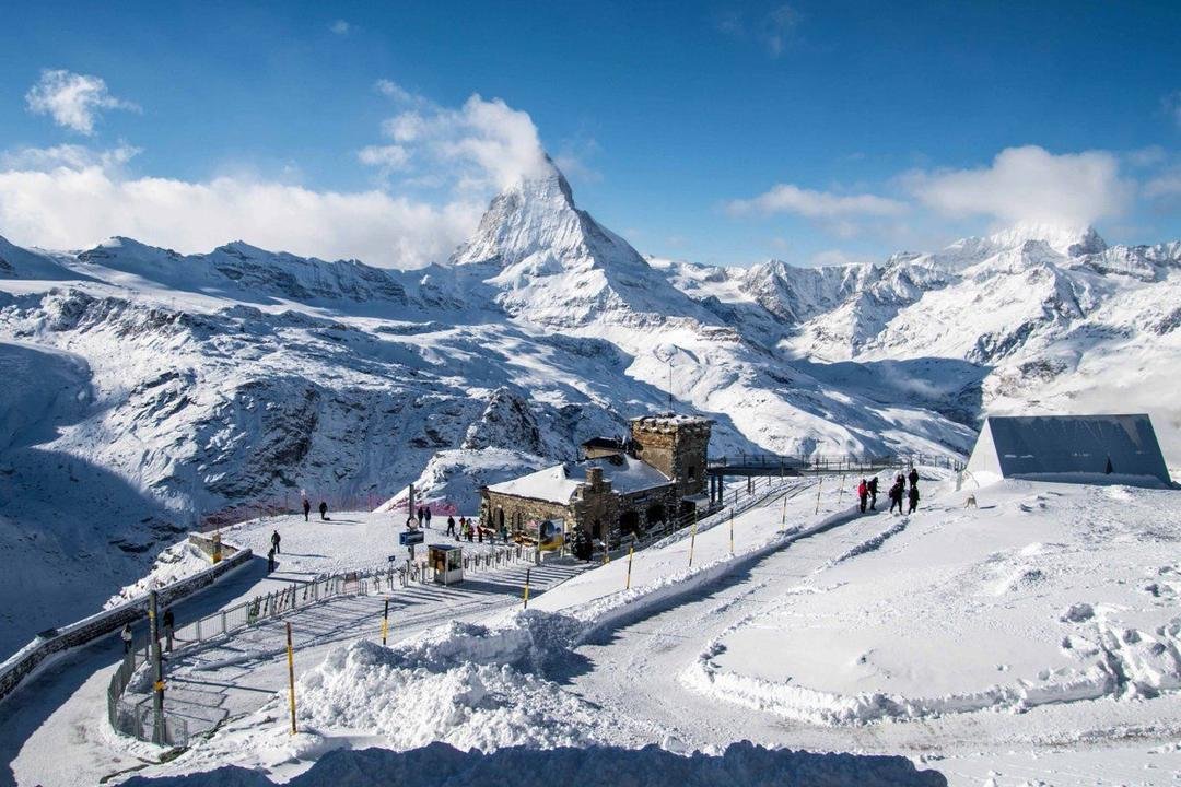 Zermatt, sebuah desa bebas mobil di Swiss, terkenal dengan pemandangan ikonik Gunung Matterhorn yang menjulang tinggi. Area ski Zermatt terhubung dengan Cervinia di Italia, menciptakan area ski internasional yang luas dengan lebih dari 360 kilometer jalur ski.